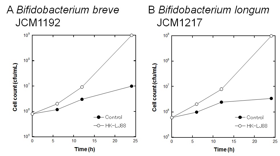 (ビフィズス菌の増殖に及ぼす乳酸菌LJ88殺菌体の作用)