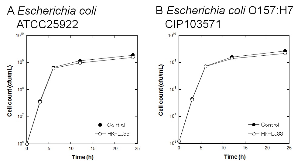 (大腸菌の増殖に及ぼす乳酸菌 LJ88殺菌体の作用)